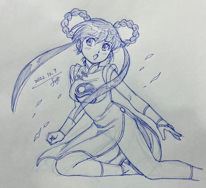 #太ももは太いから太ももっていうんだよ 最近アイビスペイントのシャーペン風ツールがお気に入りで、落書きしてたのに結果6時間強… ちなみに #魔物ハンター妖子 は当時PCエンジンのゲームで知りました(笑)