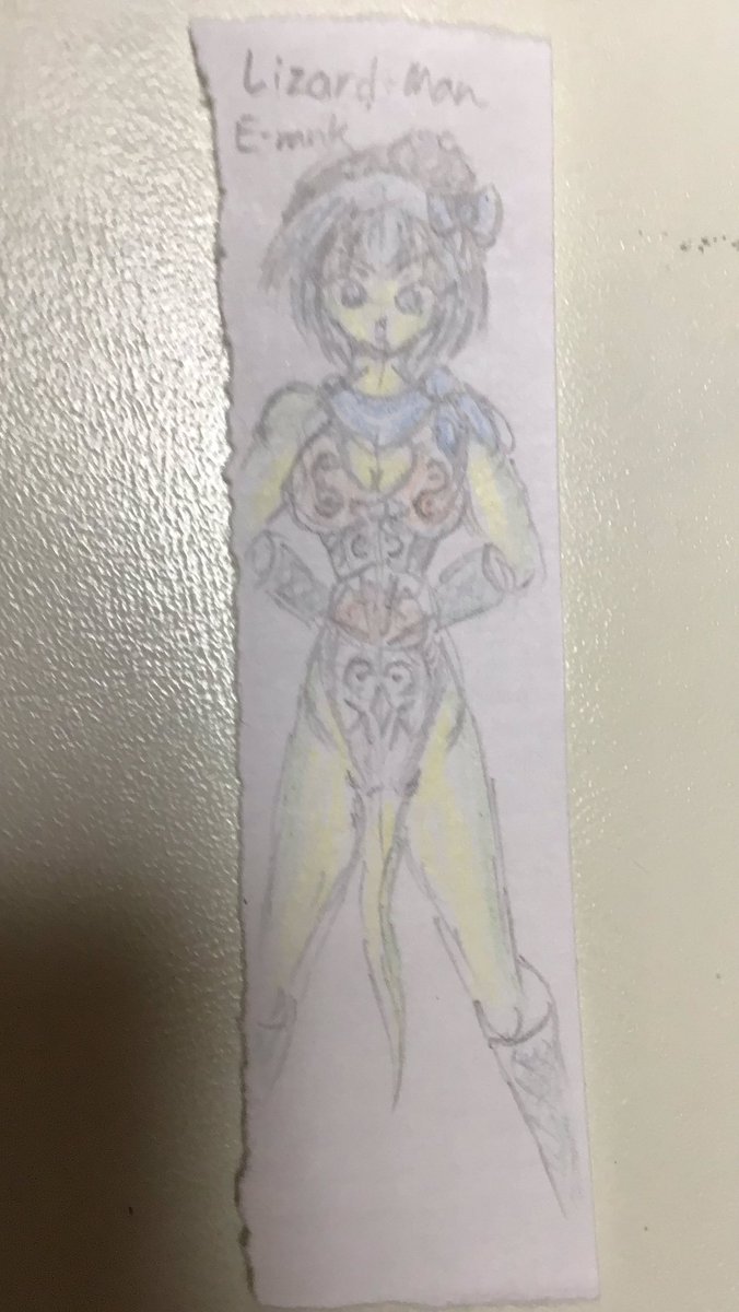 〜魔王軍戦闘員図鑑〜 種族名:リザードマン ランク:Eランク 系統:ドラゴン系 所謂蜥蜴人間。体力と攻撃力が高い。 尻尾を振って攻撃する事もある。 ただし寒さにはめっぽう弱い。 #女戦闘員 #魔物娘 #お絵描き好きな人と繋がりたい