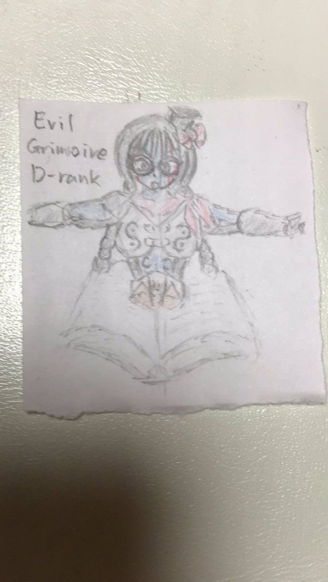 〜魔王軍戦闘員図鑑〜 種族名:エビルグリモア ランク:Dランク 系統:物質系 魔導書に邪悪な精霊が宿った魔物。 多岐に渡る魔法を駆使してくる。 紙でできてるので炎属性攻撃が弱点。 #魔物娘 #女戦闘員 #お絵描き好きな人と繋がりたい