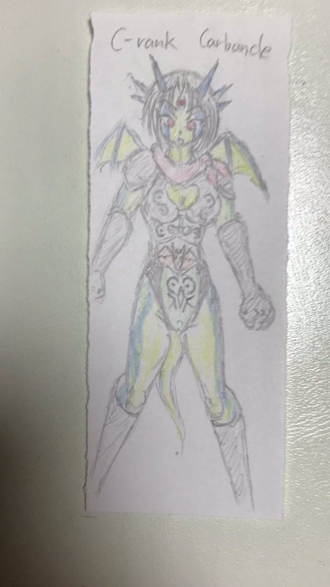 〜魔王軍戦闘員図鑑〜 種族名:カーバンクル ランク:Cランク 系統:ドラゴン系 ルビーの瞳を持つ小型ドラゴン。 魔法攻撃を反射する魔法を使う。 中々お目にかかれない珍しい魔物だ。 #魔物娘 #女戦闘員 #お絵描き好きな人と繋がりたい