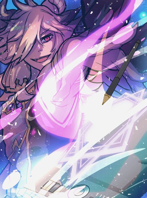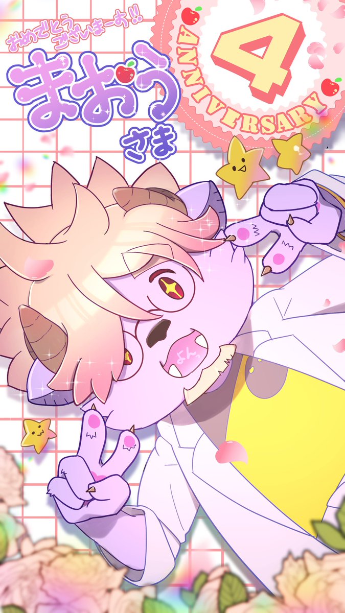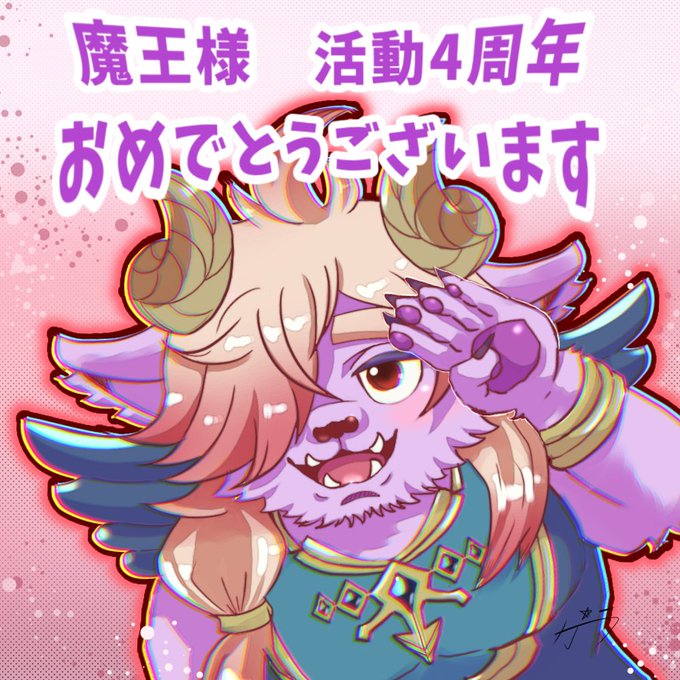 今夜の生配信には間に合わないかな…と思いつつ、いつもお絵描き講座で勉強させて頂いている魔王様(@mao_DBmiyuki )の活動4周年をお祝いするため、一生懸命描いてみました! おめでとうございます、そしてこれからも宜しくお願いいたします! #魔王4周年記念絵 #deepblizzard #illustration