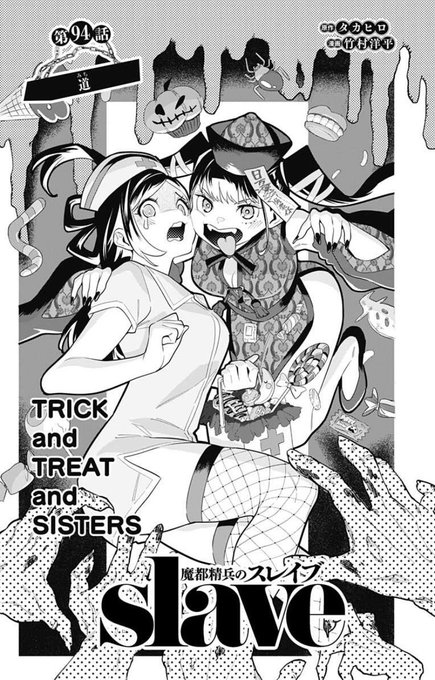 今年のハロウィンイラストは東(あずま)姉妹です🎃👻 『#魔都精兵のスレイブ』最新94話が公開されました🎉武の道を直向きに進む、一番組組長の勇姿を見てやってください‼️ shonenjumpplus.com/episode/316112…