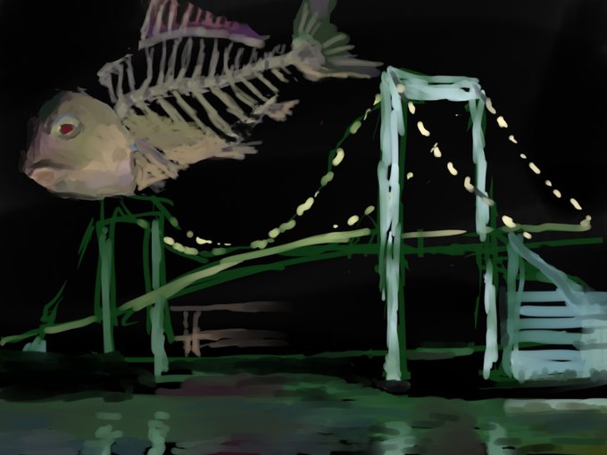 ギョルイです。 体長は2mぐらいあるけど大きな魚を1匹食べれば1ヶ月ぐらいは生きられる。豚の生姜焼きをあげるとめっちゃ喜ぶ。 #イラスト好きな人と繋がりたい #絵描きさんと繫がりたい #オリキャラ #魚類 #豚の生姜焼き