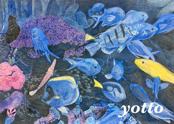 色鉛筆画【 蒼の遊 】 #色鉛筆 #色鉛筆画 #絵画 #絵 #魚 #pencilart #colorpencil 完成しました。 A4サイズの作品になります。 ご覧頂き有難うございます。 ー yotto ー