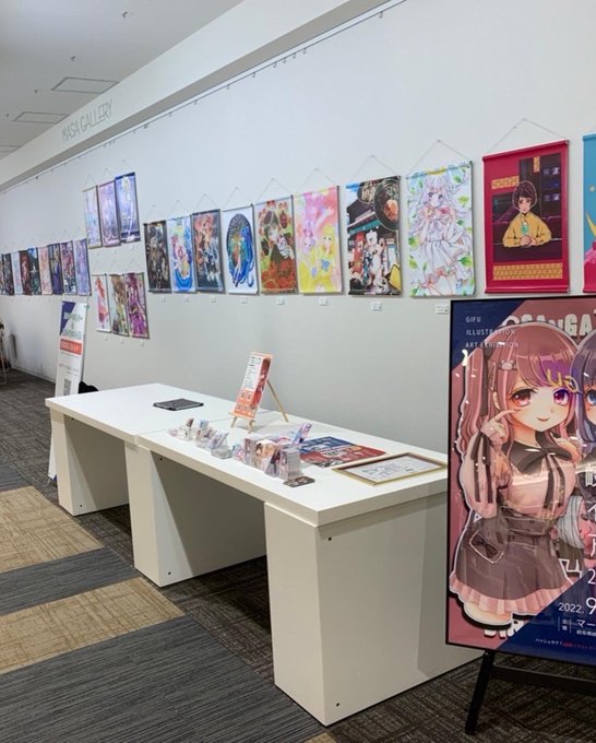 今週の日曜で終わりになります! まだの方あと少しチャンスあるよ! 来てにくれた方、もう一度しっかりイラストみに来て! 最終日は、イラストレーター18人以上来ますよ😊✨ ぜひサイン集めに来てね✨ またガチャでタペストリーもらえるかも! #七宗イラストアート展 #鮎神 twitter.com/chiechiineko/s…