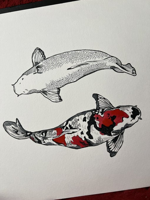 〜 鯉 〜 今朝は色鉛筆を使って、鯉を描いてみました。池の中で二匹の立派な鯉がゆったりと泳いでいます。 #色鉛筆画 #魚 #鯉 #絵を描いている人と繋がりたい #絵が好きな人と繋がりたい