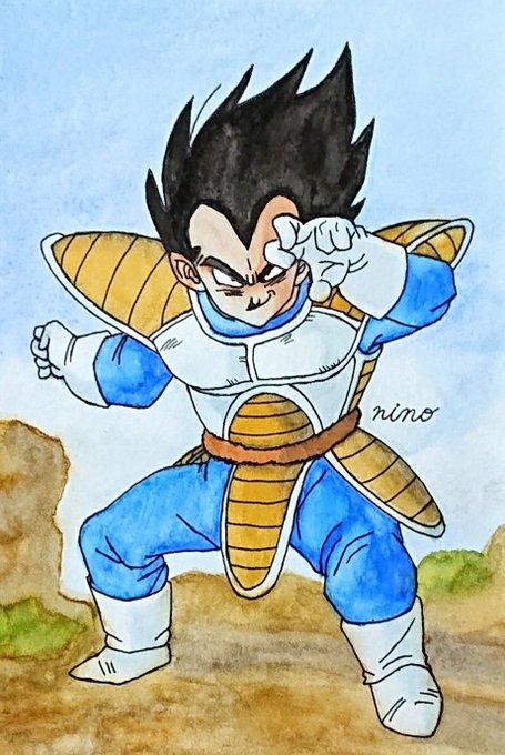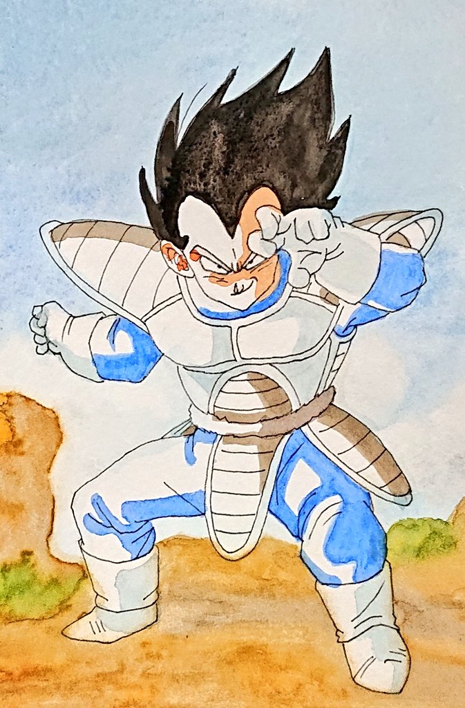 もちろんこのイラストを描いたら次のイラストはもうみんな分かるよね⁉️ 次回のイラスト発表を楽しみにしててくださ~い‼️ヾ(o≧∀≦o)ノ゙ #ドラゴンボール #ドラゴンボールイラスト #ベジータ #模写 #水彩画 #絵描きさんと繋がりたい #絵が上手くなりたい #鳥山明 #鳥山明先生 #週刊少年ジャンプ
