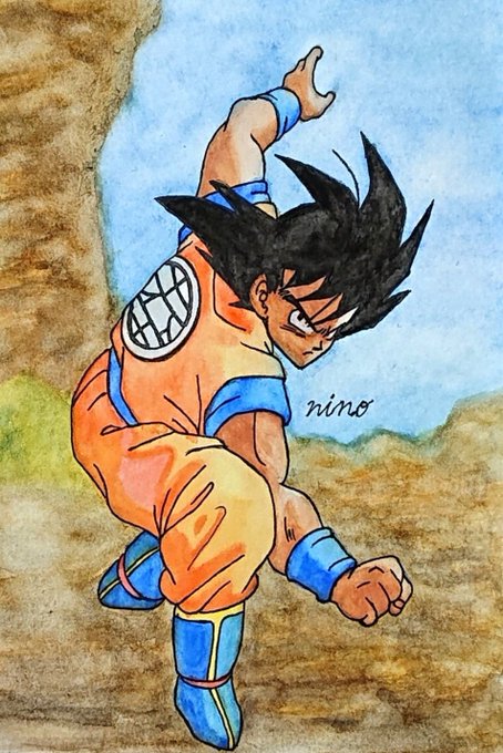 今回も前回と同じぼかし塗りに挑戦してみました❗ 特に背景はゴツゴツした質感を表現してみましたがどうでしょう❓️🙃 #ドラゴンボール #ドラゴンボールイラスト #悟空 #模写 #水彩画 #絵描きさんと繋がりたい #絵が上手くなりたい #鳥山明 #鳥山明先生 #週刊少年ジャンプ #アナログイラスト