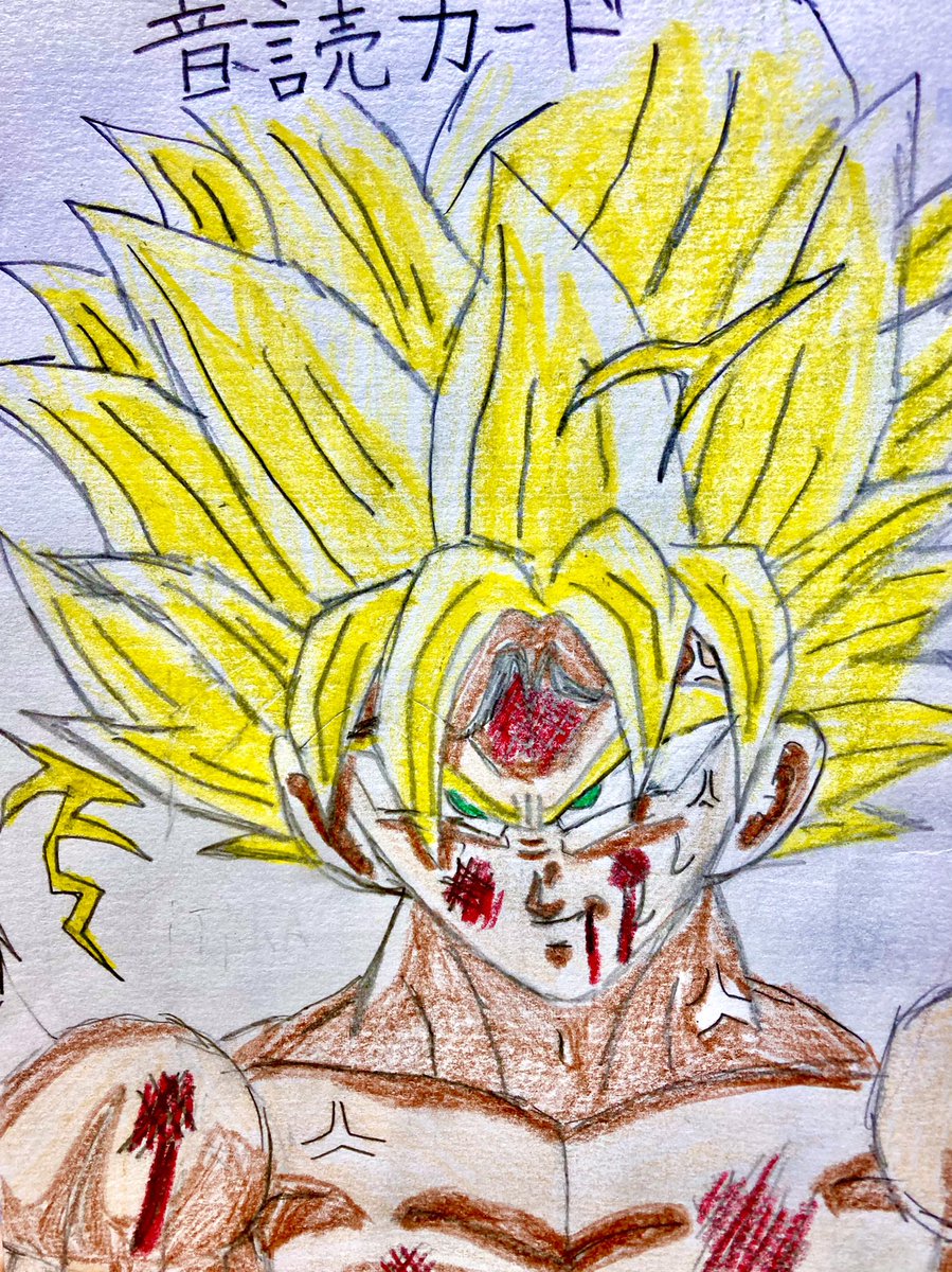 『今月の音読カードは、オリジナルの魔神悟空です。がんばったところは、はだの色のかげをぬるところです。』 by.8歳児👦🏻 #8歳児が描くドラゴンボール #ドラゴンボール #DragonBall #ドラゴンボールイラスト #鉛筆画 #色鉛筆 #悟空 #鳥山明 #鳥山明先生 #鳥山明さんを鳥山明先生と呼びます
