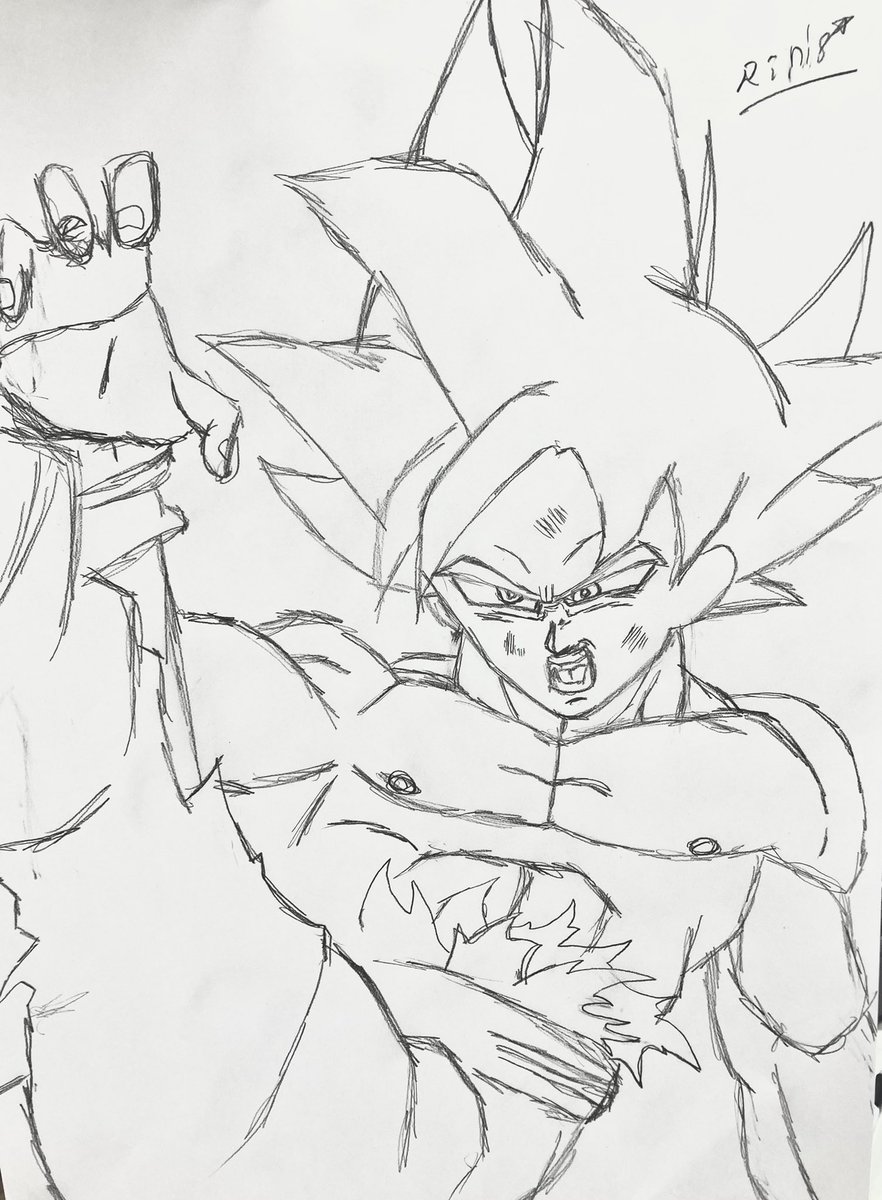 身勝手の極意です。がんばったところは体の角度です。お母さんのお仕事をまっているあいだに、シャーペンで20分くらいで描きました。by.8歳児👦🏻 #8歳児が描くドラゴンボール #8歳児が描くイラスト #シャーペン画 #鳥山明先生 #少年ジャンプ #ドラゴンボール #ドラゴンボールイラスト #dragonball