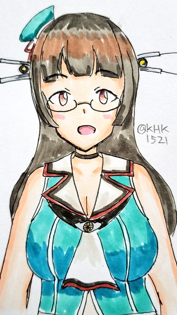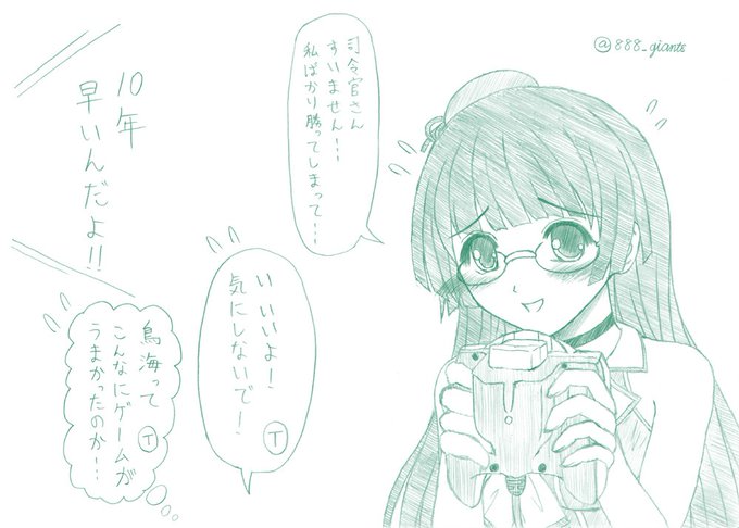「鳥海がメガネをかけているのは実は鳥海は大のゲーム好きでゲームのやりすぎで目が悪くなった」っていう脳内設定のもとワンドロで描いたものを再掲。今でもお気に入り。おめでとう! #鳥海進水日 #鳥海生誕祭2022