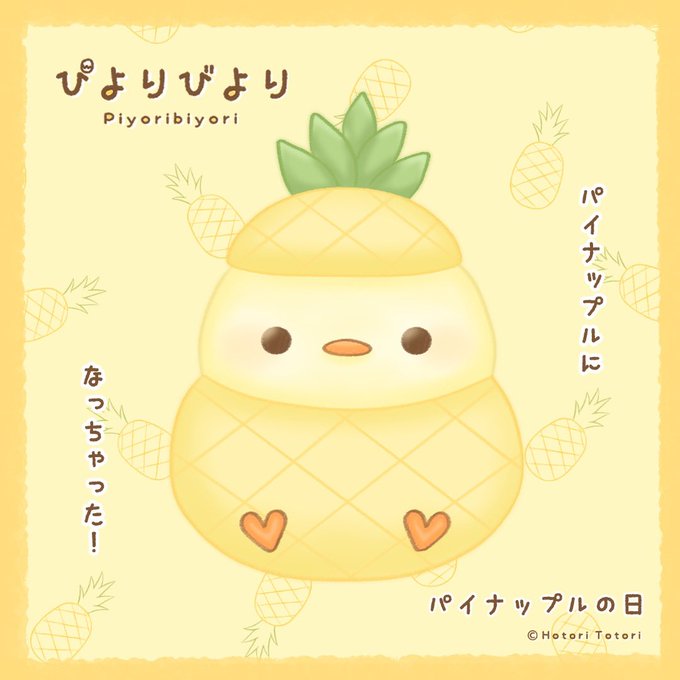 パイナップルの日🍍 ぴよりがパイナップルに変身〜!✨ #絵描きさんと繋がりたい #ゆるいイラスト #イラスト #ゆるイラスト #ひよこ #ぴよりびより #illustration #ゆるイラスト展覧会 #今日は何の日 #パイナップルの日 #お絵描き好きな人と繋がりたい #鳥達のTwitter展覧会