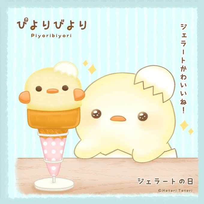 ジェラートの日🐣 ぴよりにそっくりなジェラートを食べたよ🧡 #絵描きさんと繋がりたい #ゆるいイラスト #イラスト #ゆるイラスト #ひよこ #ぴよりびより #illustration #ゆるイラスト展覧会 #今日は何の日 #ジェラートの日 #お絵描き好きな人と繋がりたい #鳥達のTwitter展覧会