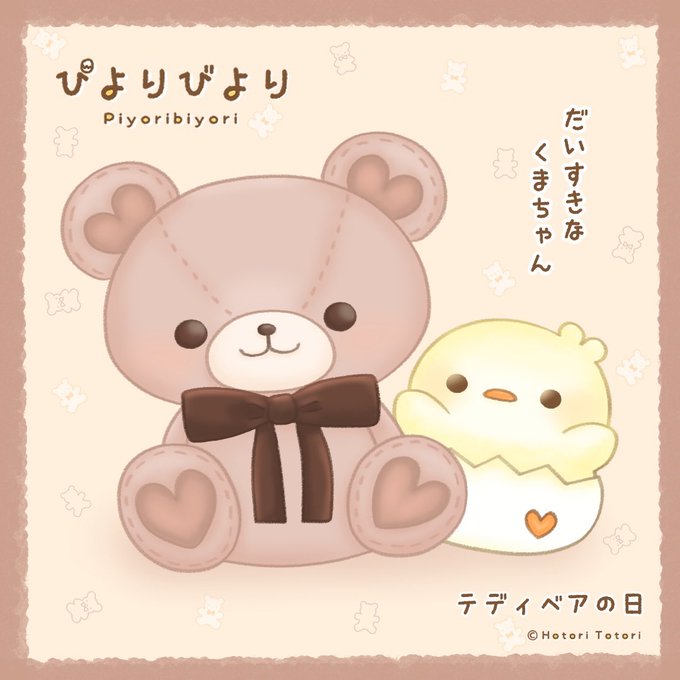 今日は #テディベアの日 ぴよりの大好きなくまちゃん🧸🧡 一緒にいると落ち着くんだぁ〜🍀 #ゆるいイラスト #イラスト #ゆるイラスト #ひよこ #ぴよりびより #illustration #ゆるイラスト展覧会 #今日は何の日 #鳥達のTwitter展覧会 #テディベアズ・デー #絵描きさんと繋がりたい