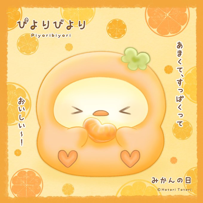 みかんの日🍊 ぴよりはフルーツが大好き!✨ みかんってあまくてすっぱくておいしいね!🐣🧡 #ゆるいイラスト #イラスト #ゆるイラスト #ひよこ #ぴよりびより #illustration #ゆるイラスト展覧会 #今日は何の日 #みかんの日 #鳥達のTwitter展覧会 #絵描きさんと繋がりたい