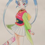 「魔法騎士レイアース」の鳳凰寺風ちゃんの10月発売の新装版単行本の衣装イラストの清書、仕上がりました🌬️推測で描いた部分もあるけど凛とした良い感じに仕上がった・・かな? #魔法騎士レイアース #鳳凰寺風 #イラスト