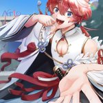 #鳳尊ファンアートコンテスト 応募させていただきます。 描いていてとても楽しかったです! ありがとうございます…!! 神様なので、柔らかく守ってくれているような雰囲気が出ればと思い描きました。 いくつか衣装の色を変更しておりますことご容赦賜りますよう宜しくお願い致します。