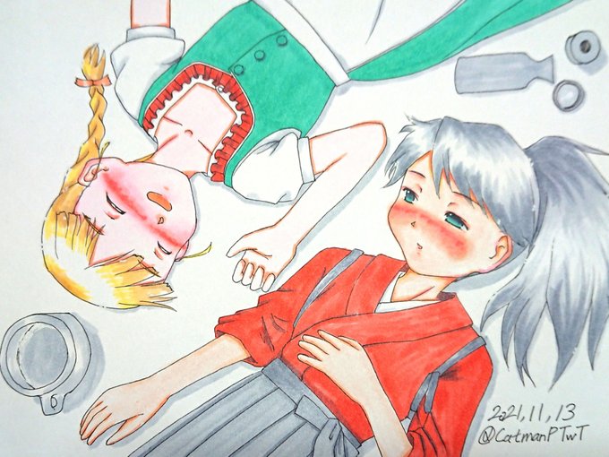 #鳳翔さん100周年おめでとう祭 #鳳翔 #神鷹 #艦これ版深夜の真剣お絵描き60分一本勝負 #艦これ版真剣お絵描き60分一本勝負_20211113 #コピック 軽空母寮での飲み会風景 そりゃめでたい日だから酔いつぶれるまで呑んでもらいましょ (今日はスキャナ諦めてスマホカメラで取り込み)