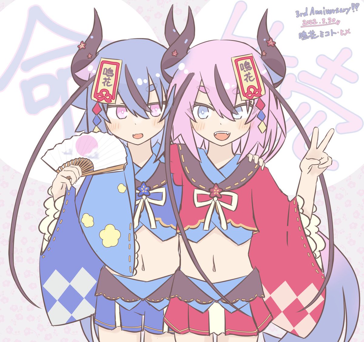 祝え!! 今日2022年3月30日は鳴花ヒメ・鳴花ミコトの3周年記念日である!!! お誕生日おめでとうございます🎉🎉🎉 (間に合った~~~) #VOCALOID #鳴花ーズ #鳴花生誕の宴2022