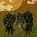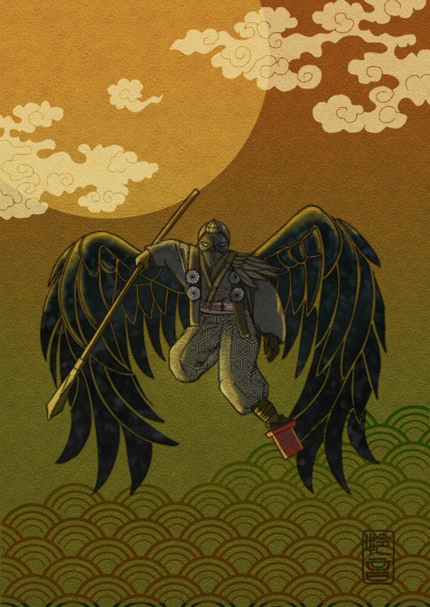 今日のお絵描き 鴉天狗 雑なアナログ下書きを修正しつつ チマチマ描いた伝統文様は 袴の柄に活用しましたー🖋 #イラスト #イラスト好きと繋がりたい #お絵描き #お絵描きさんと繋がりたい #和柄 #鴉天狗 #アトリエの系譜
