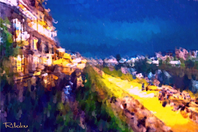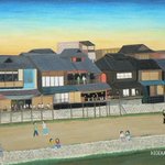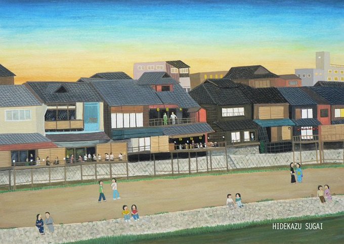 おむすびきのこさんは鴨川から四条大橋を眺めたよ。人がたくさん❣️ #japan #kyoto #kyototrip #kyotojapan #kyototripper #日本 #京都 #京都観光 #おむすびきのこさん #yasijun #illustration #イラスト #散歩 #character #characterdesign #鴨川 #river #kawaii
