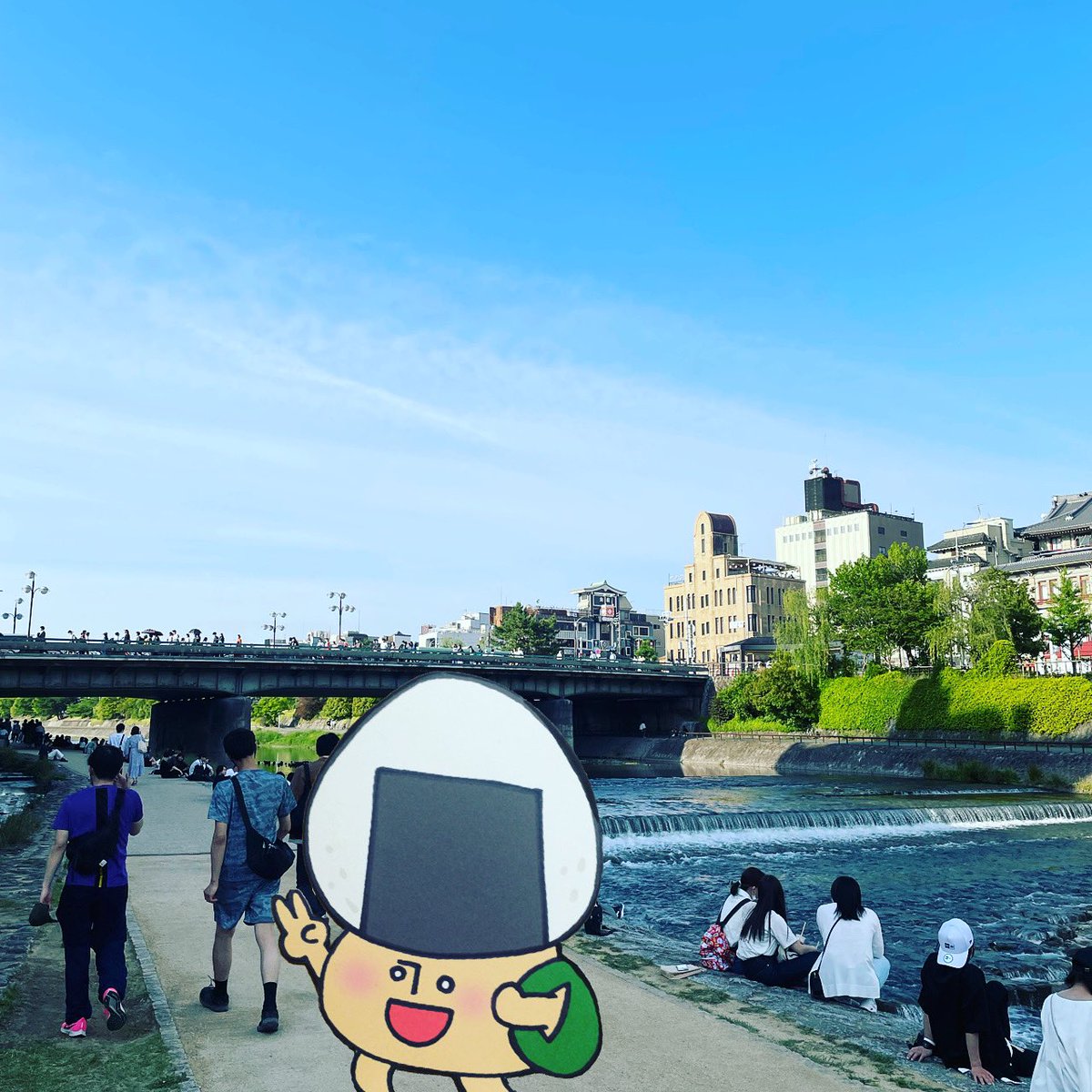 おむすびきのこさんは鴨川をお散歩したよ!いい天気でした🌞 #japan #kyoto #kyototrip #kyotojapan #kyototripper #日本 #京都 #京都観光 #おむすびきのこさん #yasijun #illustration #イラスト #旅 #散歩 #オススメの京都 #character #characterdesign #鴨川 #river #kawaii #五条大橋