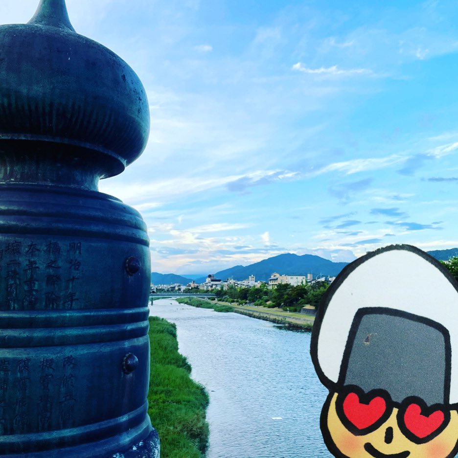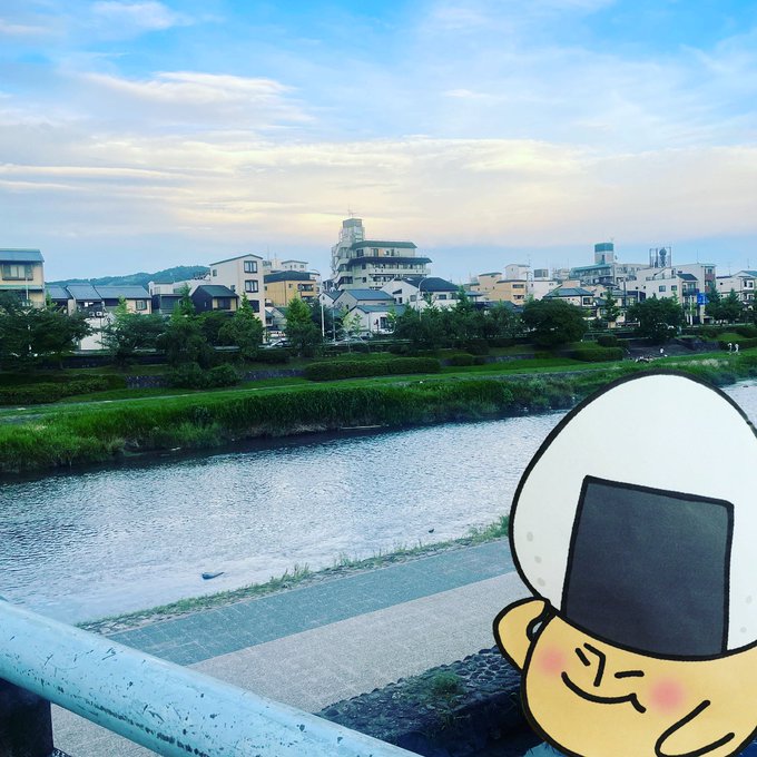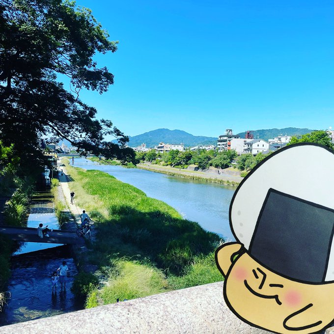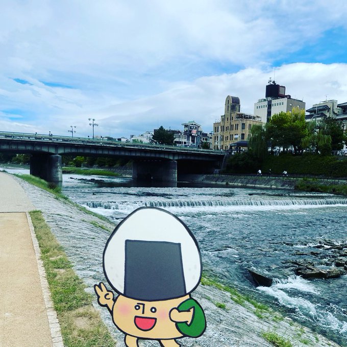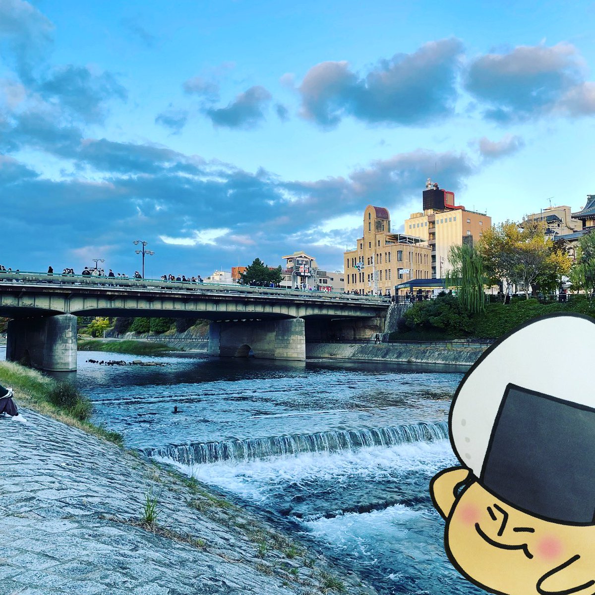 おむすびきのこさんは鴨川をお散歩したよ!ちょっとずつ秋だね。 #japan #kyoto #kyototrip #kyotojapan #kyototripper #日本 #京都 #京都観光 #おむすびきのこさん #yasijun #illustration #イラスト #旅 #散歩 #オススメの京都 #character #characterdesign #鴨川 #river #kawaii #五条大橋