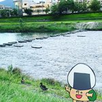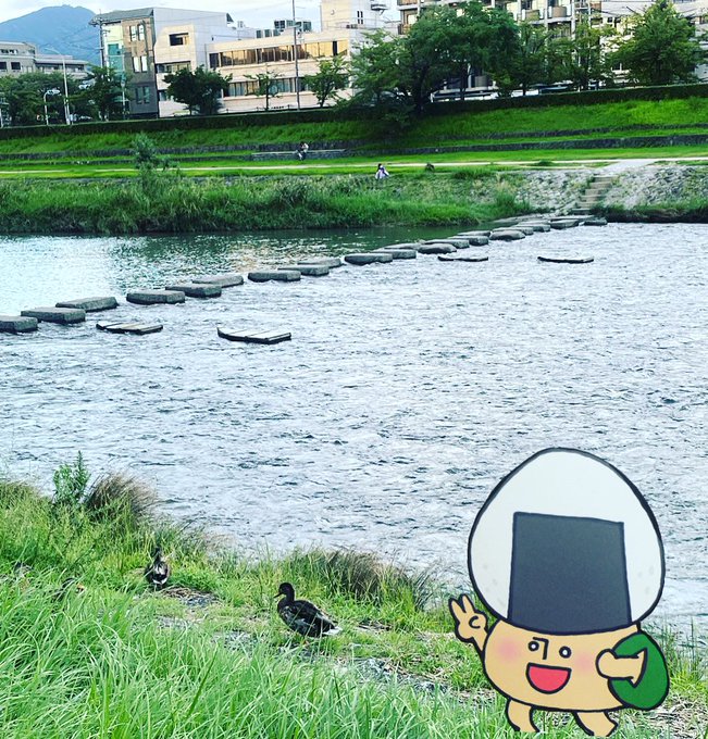 おむすびきのこさんは鴨川をお散歩したよ!夕方前は少し涼しかったよ😊 #japan #kyoto #kyototrip #kyotojapan #kyototripper #日本 #京都 #京都観光 #おむすびきのこさん #yasijun #illustration #イラスト #旅 #散歩 #オススメの京都 #character #characterdesign #鴨川 #river #kawaii