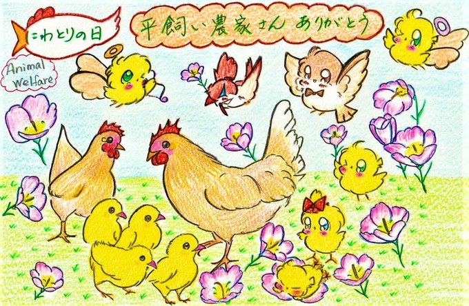 #illustration #イラスト #鶏の日 命を捧げてくれる牛、豚、鶏達が、生きている間はストレスなく生活させる #AnimalWelfare アニマルウェルフェア #平飼い卵 少し高いですが、鶏さん達の幸せそうな姿を思い浮かべながら食べると幸福度2倍3倍❣ 平飼い農家に補助金を出してもっと普及を🐤🙇