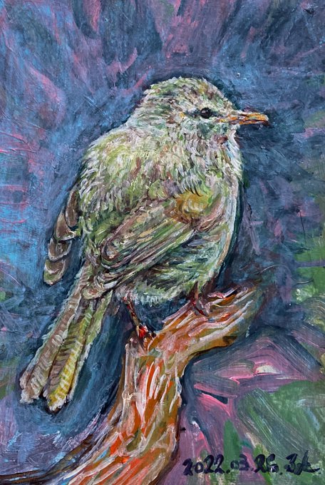 家でのんびりしていました。3が日は福の神を追い出さないように掃除しない方が良いって、掃除はしてしまったのですが。。 #みんなのSNSなんでも展示会2022 #みんなで楽しむTwitter展覧会 #art #芸術の輪 #ART_RT #美術ネットワーク #春 #絵描きさんと繋がりたい #日本画 #鶯 #春 #ポスター #原画
