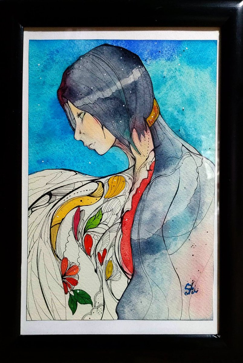 #鶴の恩返し 助けてくれた、その貴方の優しさに感謝を。せめてこの身を羽衣に変えて。 title 『夜を籠める』 仕様画材 『顔彩』 販売可 #顔彩 #現代作家の環 #世界絵師 #絵描きさんと繋がりたい #イラスト好きな人と繋がりたい #芸術の輪 #芸術同盟 #何度でも見てほしいお気に入りを貼るタグ