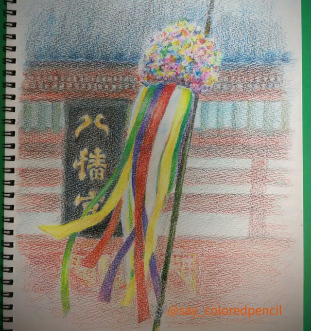 7月7日 今日は 七夕ですね🎋 今年と昨年描いた 鶴岡八幡宮⛩️の七夕飾り 日々 健やかに 穏やかに 過ごせますように🥰 #コピックスケッチ #色鉛筆画 #鎌倉 #鶴岡八幡宮 #七夕飾り #copic #coloredpencil #kamakura #tsurugaokahachimangu #tanabata #starfestival