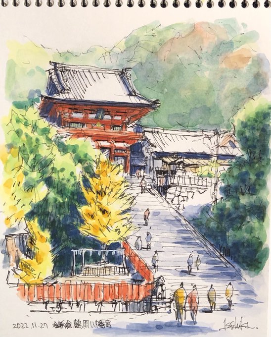 最近の仕事:へるす出版 @herusushuppan 「ひとりごとスケッチ」(第71 回「#鶴岡八幡宮」(イラストと文) 毎週見てます #鎌倉殿の13人 私が最後に訪れたのは数年前ですが、現在ずいぶんと盛り上がってるんでしょうか。 #natsumitsuchida