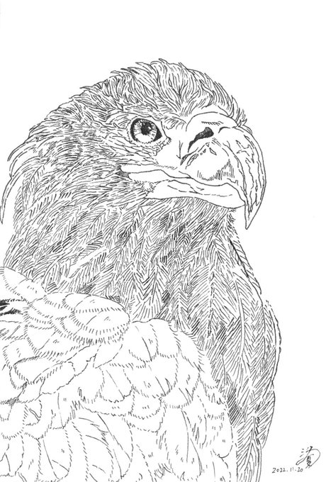 11. 鷲🦅 EAGLE ワシとタカの違いがよく分からなかったが、体長が比較的大きなものをワシ、中型から小型の物をタカと呼ぶらしい。そうそうワシじゃよ #インクトーバー #inktober2022 #鷲
