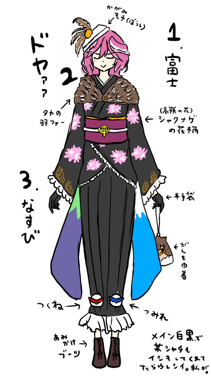 描き終わりも帰宅も間に合わなかったけど、まだ見てないからセーフという事で投下させて下さい!!ww ルイルイなら『シャレもお洒落に着こなして来る!』と思います♪ (着物の仕組みが全然分からんwww) #Luillust #鷹嶺ルイ正月衣装予想
