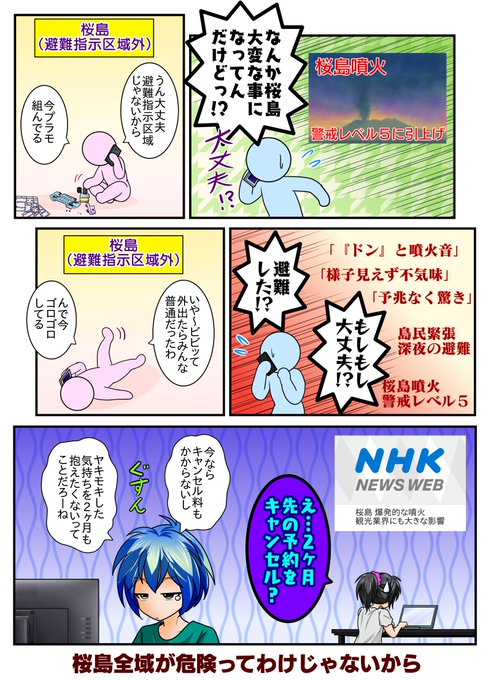 桜島噴火警戒レベル3に引き下げられた翌日の鹿児島人 参考tweet mobile.twitter.com/mariko_kazan/s… mobile.twitter.com/coolkagoshima/… mobile.twitter.com/kagopic/status… 3&4コマ目は昨日頂いたコメントより #漫画 #Web漫画 #鹿児島 #鹿児島県民