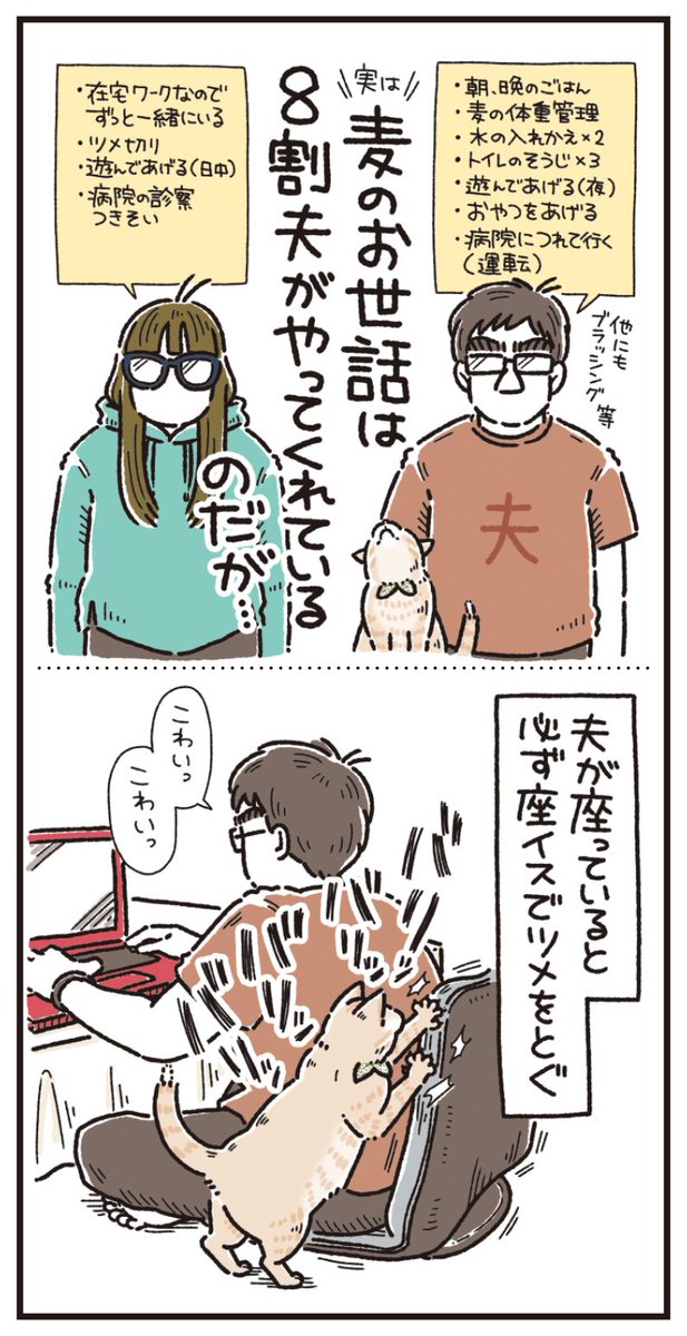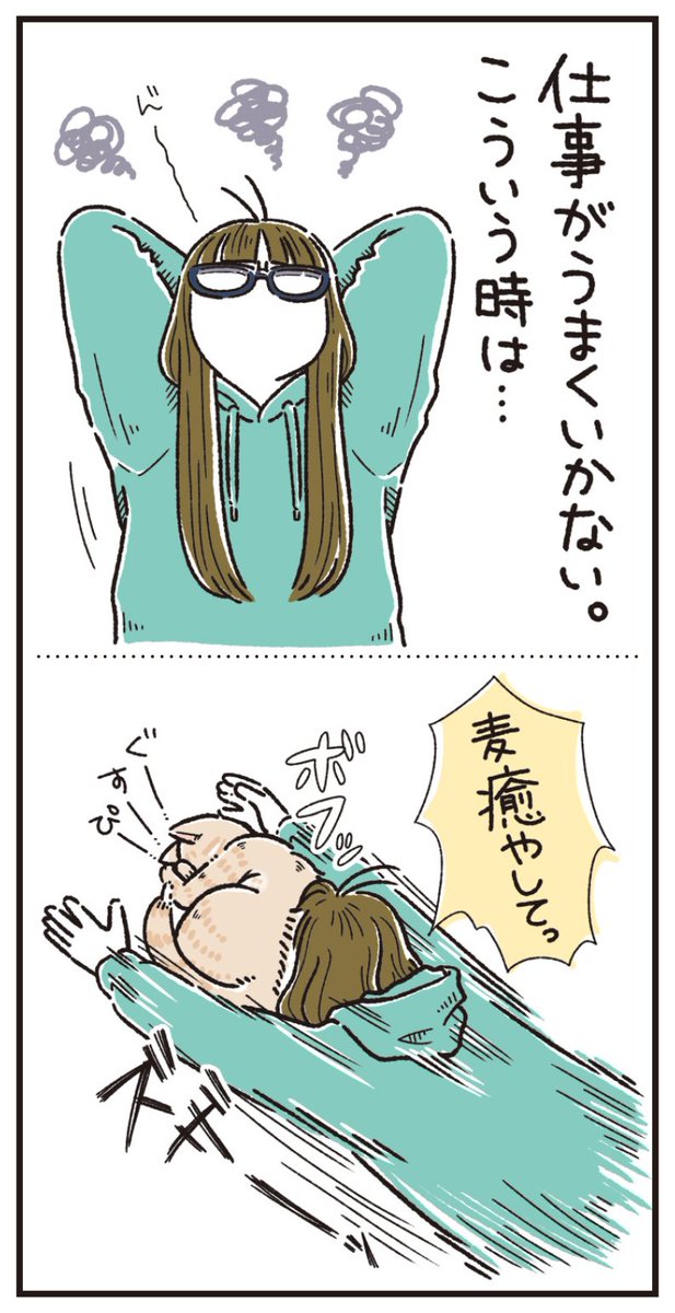 #麦がいる暮らし 妻は数時間この体勢でいます🤣 …だから好かれるのかな?🙄 ※インスタ投稿の再掲です。 最新漫画はインスタへどうぞ! instagram.com/mugi0.715/ #猫がいる暮らし #猫漫画 #4コマ漫画 #漫画が読めるハッシュタグ