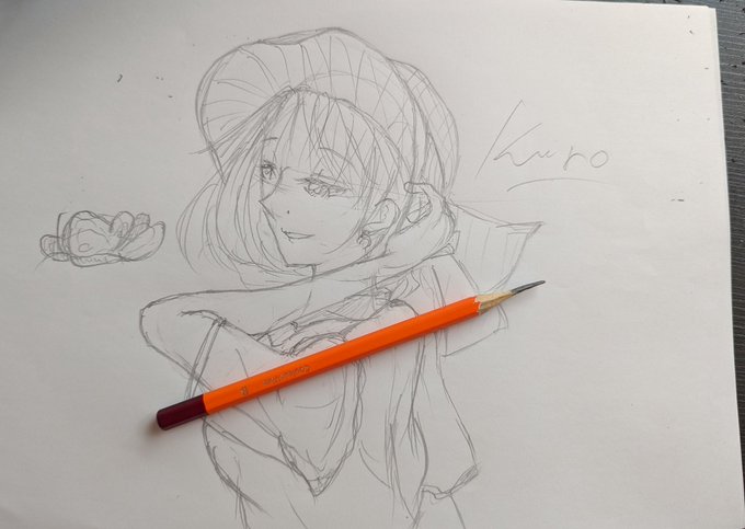 #みんなで楽しむTwitter展覧会 #イラスト #イラスト好きさんと繋がりたい #イラスト好きな人と繋がりたい #イラストレーターさんと繋がりたい #デッサン #麦わら帽子 #蝶々 そろそろ長袖描き始めるかな? の、前に半袖麦わら帽子