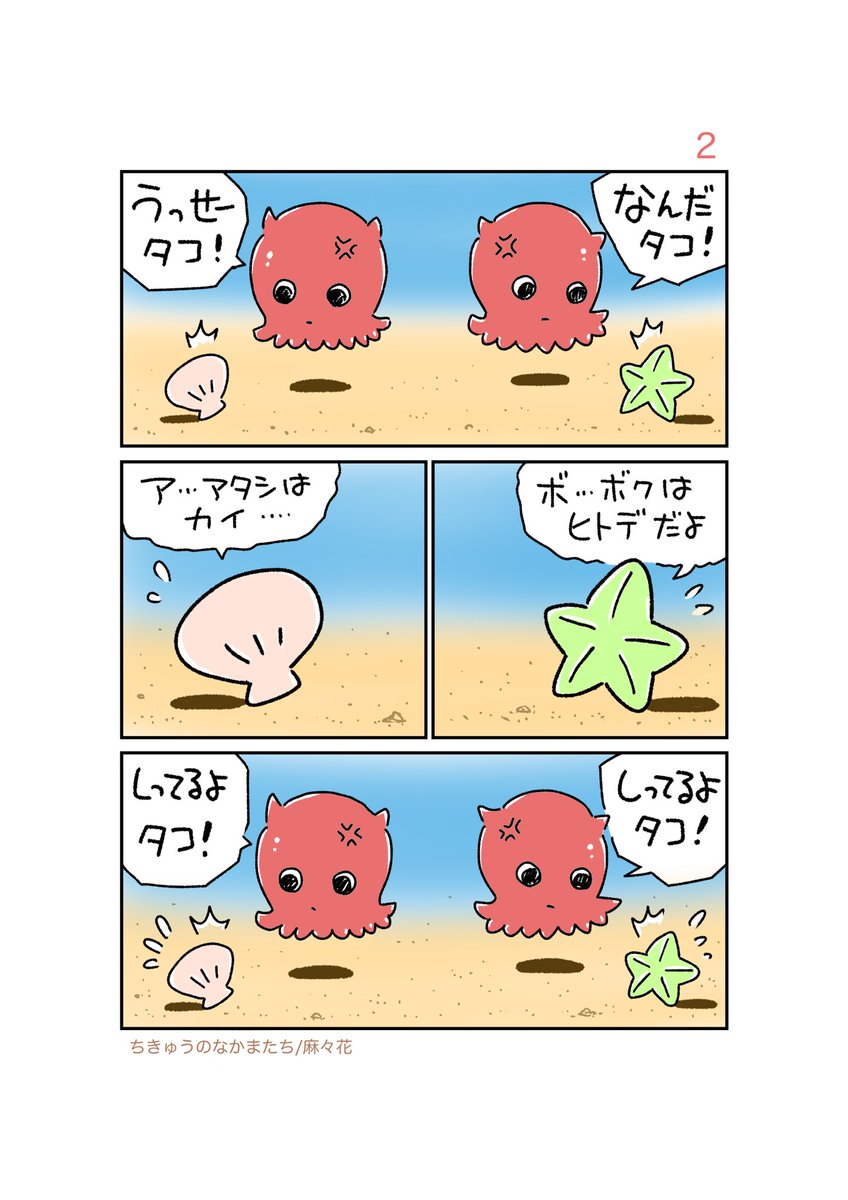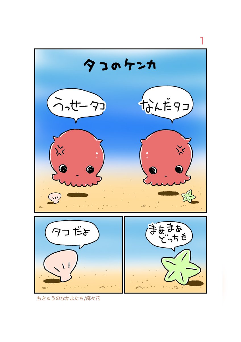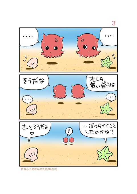 皆様いつも💖いいね・コメント・共有・投稿をありがとうございます❣️ 『ちきゅうのなかまたち』 無性に【カワイイの】を描きたい😍&時間がある時にupします〜💕 不定期upになりますがヨロオネシャス💖 #漫画 #無料漫画 #漫画がよめるハッシュタグ #ちきゅうのなかまたち #麻々花 《タコのケンカ》