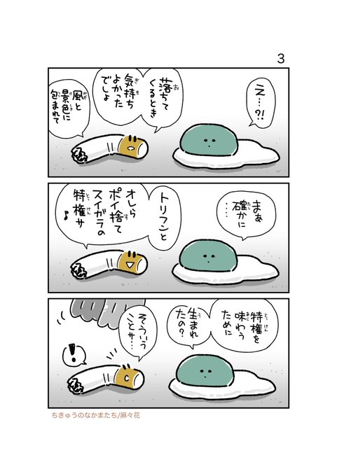 皆様いつも💖いいね・コメント・共有・投稿をありがとうございます❣️ 『ちきゅうのなかまたち』 無性に【カワイイの】を描きたい😍&時間がある時にupします〜💕 不定期upになりますがヨロオネシャス💖 #無料漫画 #漫画がよめるハッシュタグ #ちきゅうのなかまたち #麻々花 《トリフンとスイガラ》