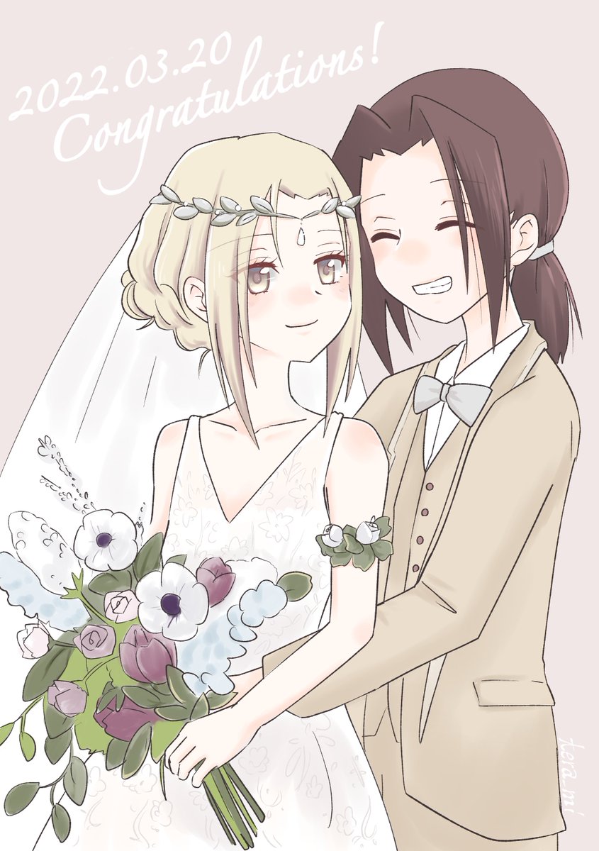 葉アンちゃん結婚記念日おめでとう💒 今月pixiv載せたやつだけど背景的にも良さそうなんで🙇♀️ 過去絵も載せようとしたけど普通に検索で出てくるからやめた🤣 最近2人描くの後々にしてしまうんだけどまた葉アン描くぞ #イラスト #SHAMANKING #葉アン #麻倉夫婦結婚記念日 #葉アン結婚記念日2023