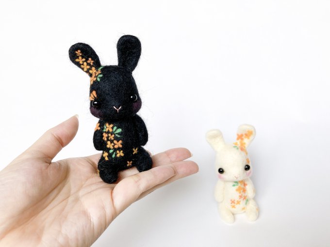 落ち着いた黒色のうさぎさんに 金木犀の模様をつけました。 お家に 小さなほっこりをお迎えしませんか? 秋香る 金木犀うさぎさん 黒色 羊毛フェルト置物 #minne minne.com/items/29663496 #minneで販売中 #minne秋 #金木犀 #羊毛フェルト #黒うさぎ #rabbit #needlefelting