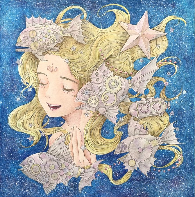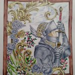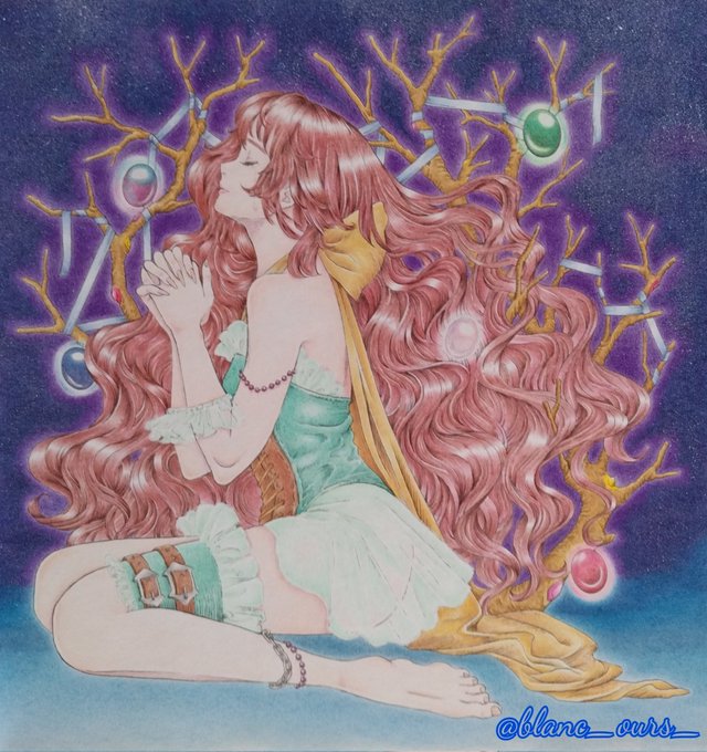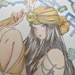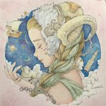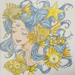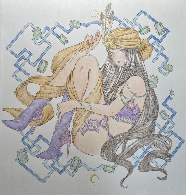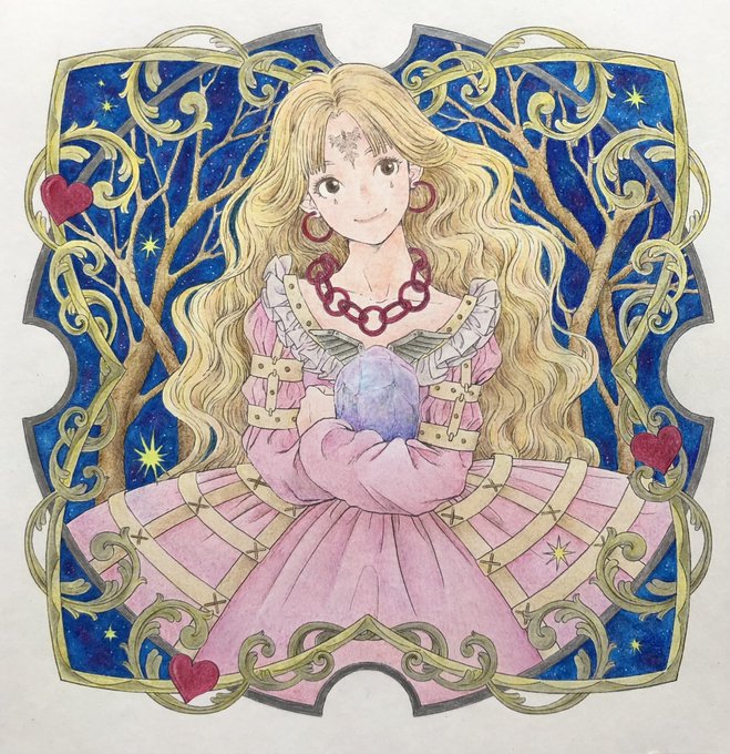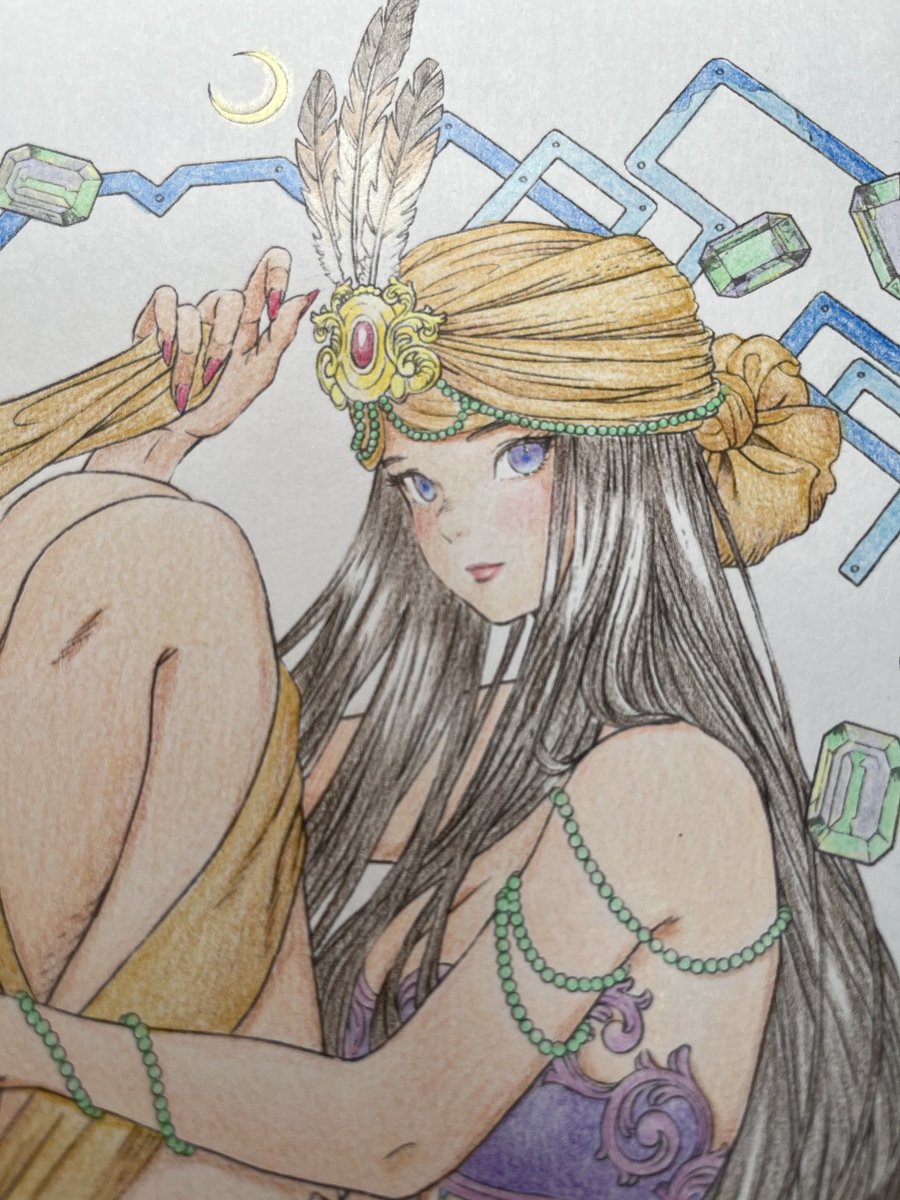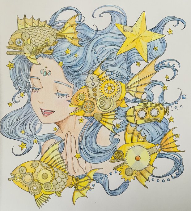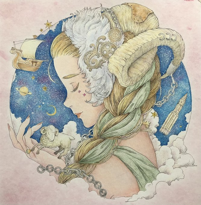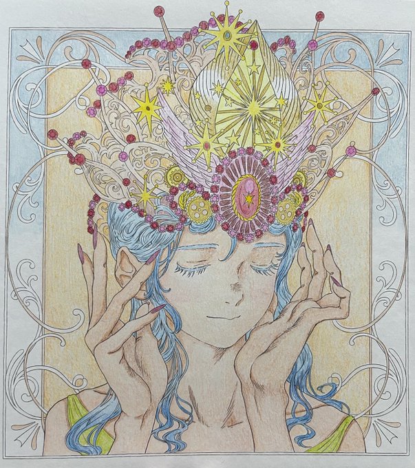 #黒イ森ぬり絵ブック #色鉛筆 #塗ってみた #ヴィクトリアン幻想図鑑 牡羊座がテーマのイラストです。 金属の質感を出すのが楽しくて好きです。指の形とか髪の流れが相変わらず素敵なイラストですね(^^)