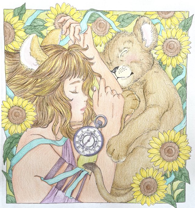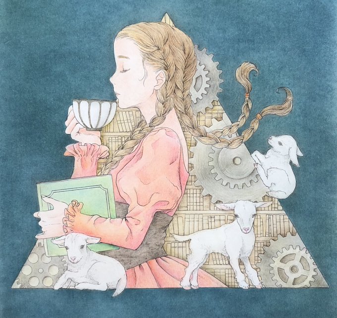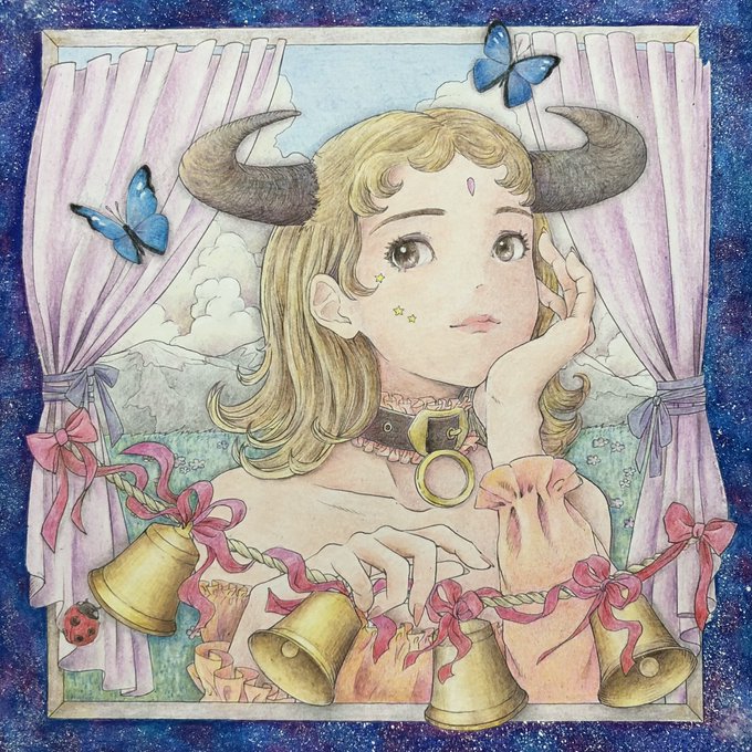 #黒イ森ぬり絵ブック #ヴィクトリアン幻想図鑑 #色鉛筆 #塗ってみた 牡牛座がテーマのイラスト。塗り手の年齢が関係してくるのか、元のイラストより古風な顔立ちに。ほんとはもっと可愛かったのですが💦空の色は進撃の巨人でエメラルドグリーンの空が綺麗だったので参考にしました。