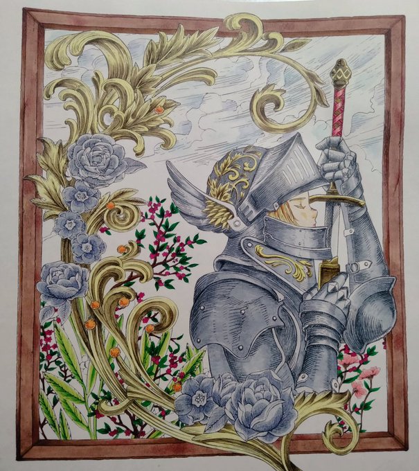 コピックで塗り絵してみた。久々に使った割にはなかなかうまく塗れた気がする。 線画がとてもきれいだから、完成度高くて楽しい! やっぱりコピックは発色が好きだな~。 #黒イ森ぬり絵ブック #ヴィクトリアン幻想図鑑黒イ森ぬり絵ブック #コピック