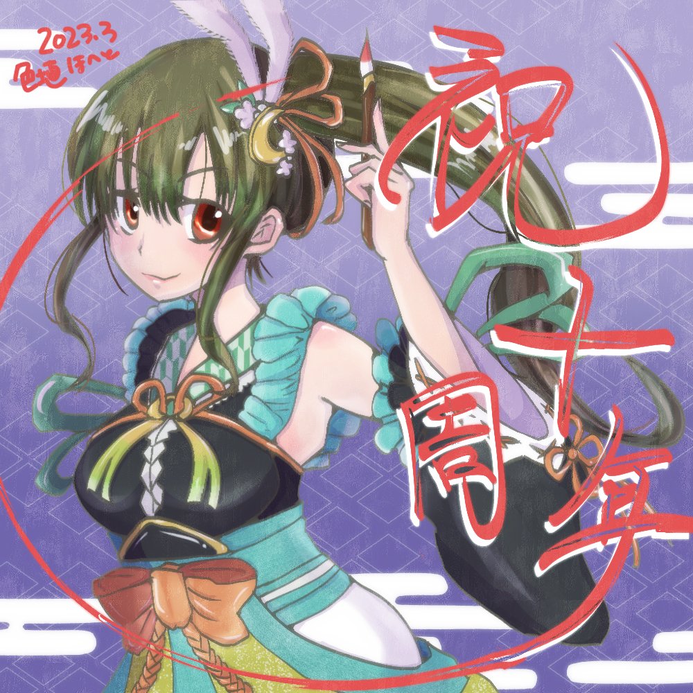 遅ればせながら… 10周年おめでとうございます! ずっとミコトちゃんが好きで、もう今では見られなくなった、進化差分のポニテverでお祝いです。 八百万シリーズ大好きなので、またミコトちゃん達のお話見れたらいいなと思います。 #祝黒ウィズ10周年ファンアート #黒ウィズ10周年