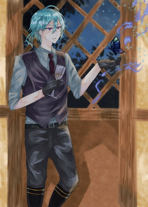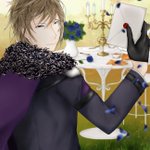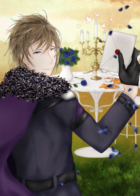 「安らぎの一時を楽しむか?」 ノクス・ヴァニタスで参加しました! 主催者さん、素敵な企画をありがとうございました✨✨ ロザリアちゃん達とのパーティー後のノクスさんです🦋𓂃 𓈒𓏸 #黒ウィズ9周年パーティーイラスト企画