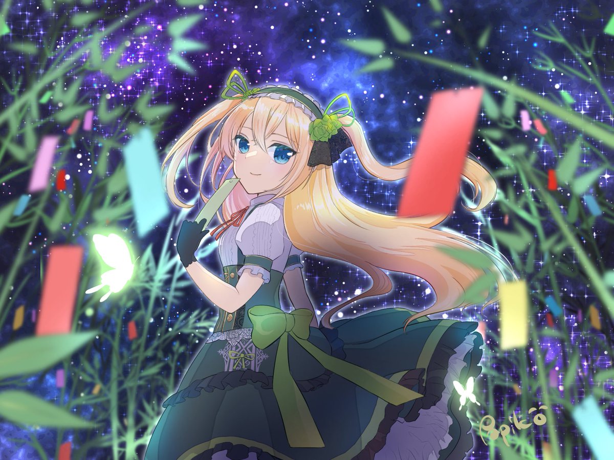 #黒ウィズFanArt_カレンダー企画 7月リフィルを担当させて頂きました🥰 「夢みざる者」と「願いの行事」という相反するテーマで描きましたが、メアレスであっても願いはあるのかなーと思っております🎋