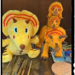 #恐竜トリケラトプス シリーズの絵本が30周年と言う事で、お祝いに編んだビッグホーンを公式様( @komineshoten_ )から渡して頂きました。 先生が私のあみぐるみ持ってるー!\(^o^)/恐悦至極! 小峰書店様、ありがとうございましたー('▽') #黒川みつひろ #上野の森親子ブックフェスタ #あみぐるみ