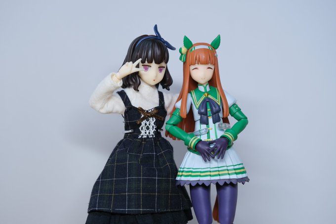 実は背格好そんなに変わらないけど、手足が細くて顔も小さいというモデル体型な感じなのかな…とも思う。 (百合亜様顔近いっす…) #アサルトリリィドール部 #ウマ娘 #黒木・フランシスカ・百合亜 #サイレンススズカ